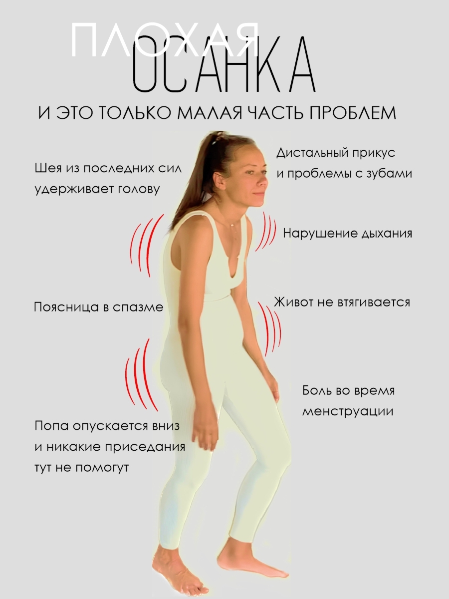 | Подтянутый живот за счет изменения положения таза и грудной клетки | |